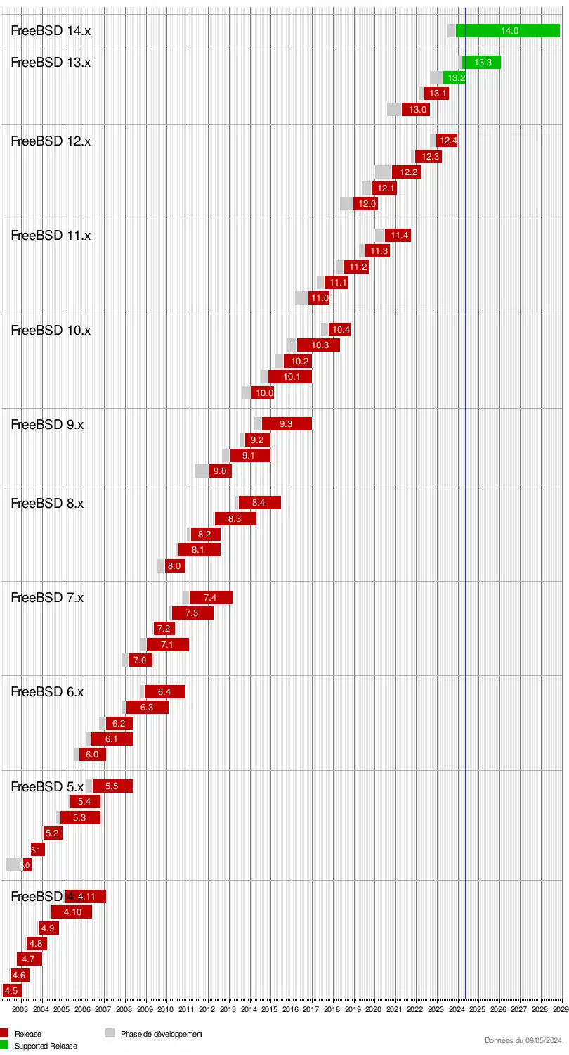 - RELENG_x_y devient FreeBSD-x.y-RELEASE au moment de la release, et FreeBSD-x.y-RELEASE-p1, puis p2, etc. avec les mises à jour.