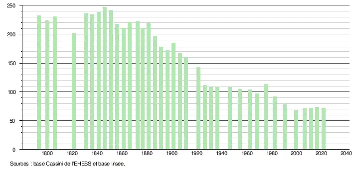 La population est « tombée » de plus de moitié en un siècle (entre 1850 et 1950), remarquable exemple d'exode rural.