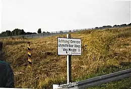 Une frontière est un espace d'épaisseur variable, de la ligne imaginaire à un espace particulier, séparant ou joignant deux territoires, en particulier deux États souverains. Les fonctions d'une frontière peuvent fortement varier suivant les régions et les périodes. Entre les pays de l'espace Schengen, elle n'est qu'une limite politique et juridique ne faisant pas obstacle à la circulation des personnes et des biens[1], alors qu'entre les deux Corées, elle est matérialisée par une large bande surveillée militairement et son franchissement est très restreint[2],[3],[4].