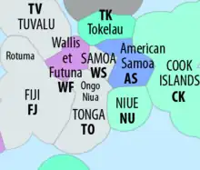- La France (avec Wallis-et-Futuna) au nord-ouest ;