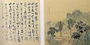 Dans la mesure où la plupart des peintres et calligraphes célèbres sont originaires du Sud, quand un artiste du Nord se distingue, il attire énormément l'attention. Tel est le cas de Fu Shan.[réf. nécessaire] Après la chute des Ming, Fu se met à porter un manteau rouge et adopte le nom de Taoïste en Habit Rouge pour montrer sa loyauté à la dynastie déchue. Il vit dans l'obscurité, pratiquant la médecine, peignant, vendant des calligraphies et gravant des sceaux en pierre. Ses œuvres attirent néanmoins l'attention des autorités Qing, qui tentent de l'enrôler au service du gouvernement. Il refuse fermement. Ses paysages sont d'une maladresse anachronique, comme on peut le voir dans son Album de paysages. il aime les images étranges et théâtrales, les formes bizarres et les couleurs choquantes; comme ses poèmes et ses calligraphies, ses peintures ont un sens caché[2].