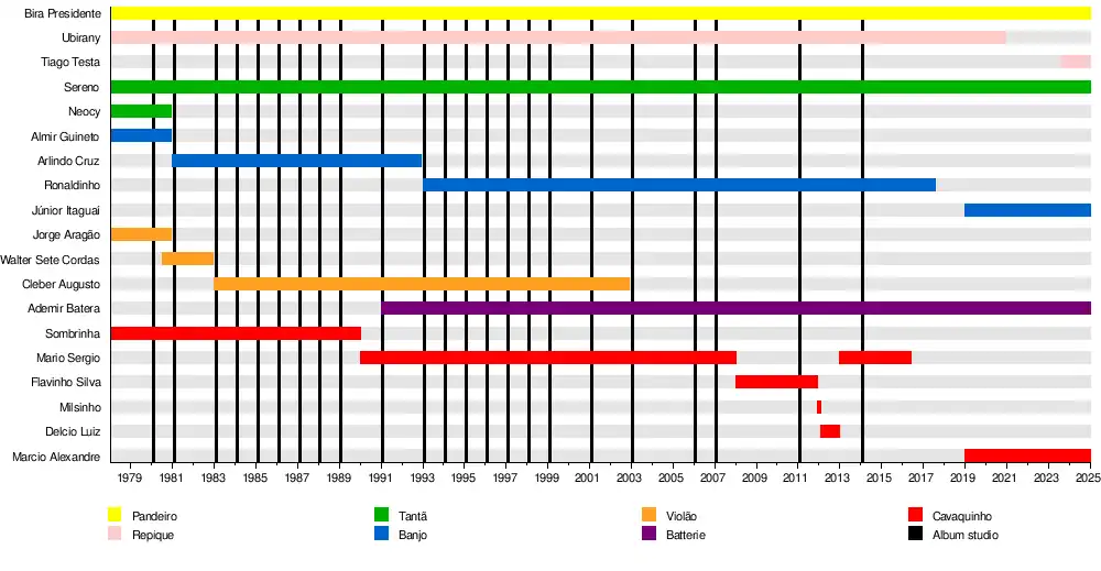 Mario Sergio meurt d'un lymphome en mai 2016[21],[22],[33]. Même secoués par la perte de leur compagnon, les musiciens du Fundo de Quintal décident de poursuivre leur activité et, peu de temps après, ils recrutent le musicien Marcio Alexandre, de l'école de samba Vai-Vai de São Paulo, comme nouveau membre. En 2017, c'est au tour de Ronaldinho d'annoncer son départ du groupe[24], remplacé plus tard par le musicien Júnior Itaguay. En décembre 2020, Fundo de Quintal perd Ubirany, l'un de ses fondateurs, à cause de complications liées à la maladie causée par le coronavirus[34],[35]. Le percussionniste Tiago Testa rejoint le groupe pour jouer le repique de mão à partir d'août 2023[36].