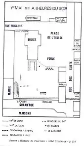 À 15 h 30, les renforts du 145e régiment d'infanterie arrivèrent en gare de Fourmies, accueillis sans hostilité : parmi eux se trouvaient des conscrits du pays, et l'armée était plutôt bien considérée[n 1]. Ils se dirigèrent vers la mairie, suivis par des badauds[14].