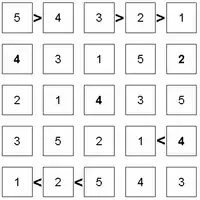 Comme un Sudoku, un Futoshiki résolu est un cas particulier de carré latin.