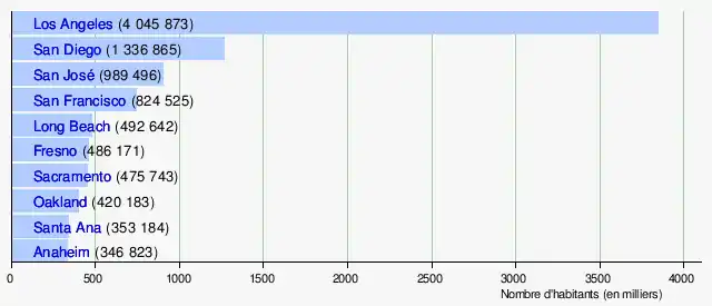 Population des 10 villes de Californie les plus peuplées (2008)[N 7],[1]