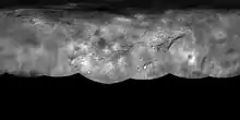Le pôle sud n'a pas été photographié par New Horizons et est par conséquent inconnu[10].
