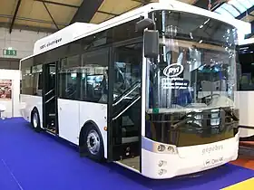Midibus électrique pour 47 passagers dont 25 assis avec une autonomie de 120 km, doté de batteries batteries lithium-ion.