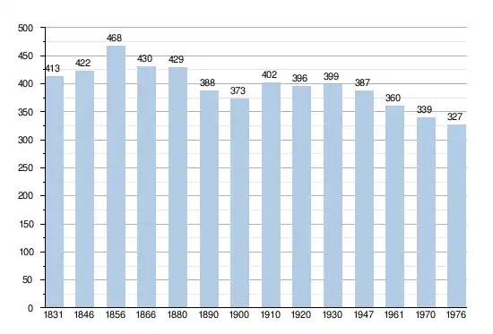 - Sources : INS, Rem. : 1831 jusqu'en 1970 = recensements, 1976 = nombre d'habitants au 31 décembre.
