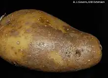 Cette maladie se développe surtout pendant la phase de conservation et affecte grandement la qualité des tubercules atteints mais n'a pas d'incidence agronomique.