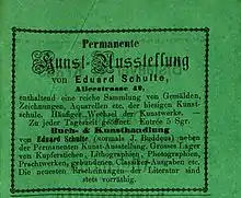 Eduard Schulte dirige une boutique d'art à Alleestraße 42 (de) à Düsseldorf, qui jouit d'une bonne réputation[2], mais a également une succursale à Richartzstraße 16 à Cologne. En 1886, il reprend également l'espace d'exposition de la maison de vente aux enchères Lepke (de) à Berlin, Unter den Linden 4a. En 1891, la concession d'art Eduard Schulte est transférée au Palais Redern (de) sur la Pariser Platz, Unter den Linden 1. Lors de sa démolition en 1904, la galerie déménage en face du palais des comtes de Schwerin, Unter den Linden 75. Les plans de la nouvelle boutique d'art furent réalisés par Alfred Messel et se trouvent maintenant au musée d'architecture de l'université technique de Berlin. Hermann Schulte y est mentionné comme le constructeur[3].