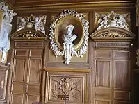 Les boiseries en noyer sculpté sont l'œuvre du menuisier italien Francesco Scibec de Carpi qui les réalisa dès 1535 avec des essences rares, mais se tourna presque exclusivement vers le bois de noyer à partir de 1539, date à laquelle il exécute le parquet de la galerie et les lambris.
