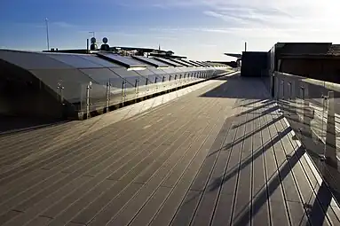 Au 8ème étage, sur le toit du centre commercial, se trouve une terrasse extérieure avec vue panoramique sur les toits de Riga. La terrasse accueille en hiver un restaurant et une patinoire. En été elle accueille 3 restaurants[4]. Un parking souterrain sur deux niveaux ouvert 24h/24 avec des bornes de recharge pour voitures électriques est disponible.