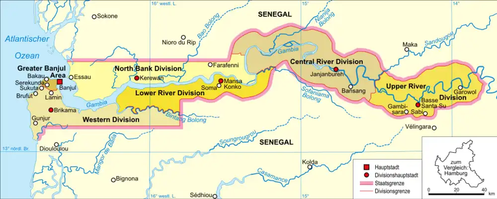 - Greater Banjul Division, autour de la capitale Banjul ;