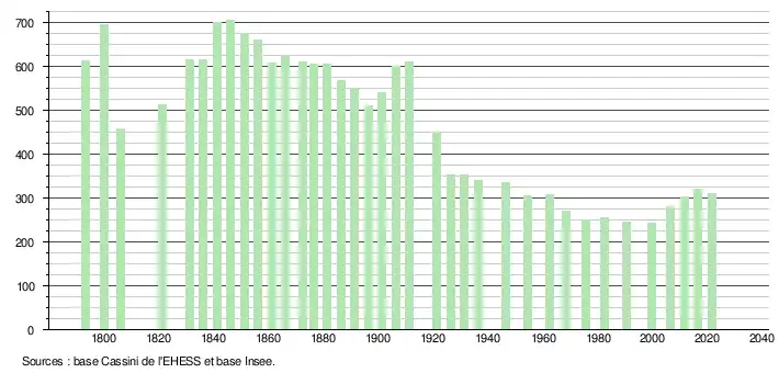 | Rang de la commune dans le département | 251 | 247 | 305 | 301 | 300 | 308 | 311 | 299 |