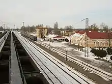 Le bâtiment voyageurs et l'entrée de la gare. | |