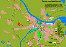 La construction de la gare s'inscrit dans le cadre de la Jonction ferroviaire de Belgrade (en serbe : Београдски железнички чвор et Beogradski železnički čvor), un vaste plan de réorganisation des transports ferroviaires dans la capitale serbe inauguré en 1974. La construction de la gare, commencée en 1977, a été retardée par d'importants problèmes de financement ; elle implique notamment la réalisation de 14 km de tunnels, la réalisation de plusieurs ponts, parmi lesquels figure le Nouveau pont ferroviaire sur la Save ouvert au trafic en 1979.
