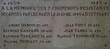Plaque commémorative des cheminots résistants apposée sur la façade de la gare.