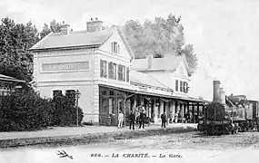 La gare de La Charité est mise en service le par la Compagnie des chemins de fer de Paris à Lyon et à la Méditerranée (PLM), lorsqu'elle ouvre à l'exploitation les 136 km d'une partie de la première section de sa ligne de Paris à Lyon par le Bourbonnais. Pour desservir la gare, la ligne s'écarte du fleuve en direction des collines, entre la Loire et la Nièvre[3]. En 1862, la gare est « autorisée à accepter les dépêches du public »[4].