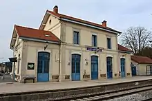 Le bâtiment voyageurs et l'entrée de la gare. | |