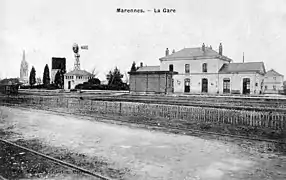 La « station de Marennes » est mise en service le [3] par l'Administration des chemins de fer de l'État, lorsqu'elle ouvre à une « exploitation restreinte » son « chemin de fer de Tonnay-Charente à Marennes et au Chapus »[4]. L'ouverture officielle à une exploitation ordinaire de la « gare de Marennes »[alpha 3] a lieu le , elle est annoncée au journal officiel du [5] et dans la presse[6].