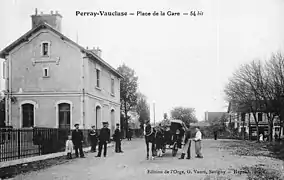 La station de Perray-Vaucluse[alpha 1], du nom de l'asile de Perray-Vaucluse, ouverte uniquement aux voyageurs, est mise en service[3] le par la compagnie du PO. Comme convenu, elle est située à proximité de l'établissement et donne sur les bois, sans aucune installation. Le , un acte de cession d'un terrain est passé devant M. Hippolyte Cocheris, maire de Sainte-Geneviève-des-Bois, délégué par arrêté du préfet de Seine-et-Oise, entre M. Paul Audibert, chef de section au service de la voie et M. Henri Maréchal, architecte des asiles, moyennant la somme de 1 510,79 francs. Cette parcelle permet la création de la place de la gare[3].
