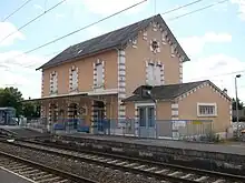 Le bâtiment voyageurs et l'entrée de la gare. | ||||