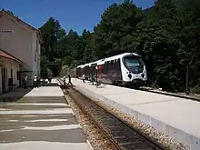C'est une gare d'évitement avec une deuxième voie pour le croisement des rames AMG 800.