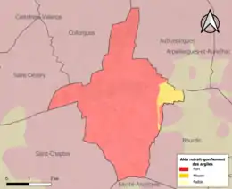 Le retrait-gonflement des sols argileux est susceptible d'engendrer des dommages importants aux bâtiments en cas d’alternance de périodes de sécheresse et de pluie. La totalité de la commune est en aléa moyen ou fort (67,5 % au niveau départemental et 48,5 % au niveau national). Sur les 401 bâtiments dénombrés sur la commune en 2019, 401 sont en aléa moyen ou fort, soit 100 %, à comparer aux 90 % au niveau départemental et 54 % au niveau national. Une cartographie de l'exposition du territoire national au retrait gonflement des sols argileux est disponible sur le site du BRGM[19],[Carte 2].
