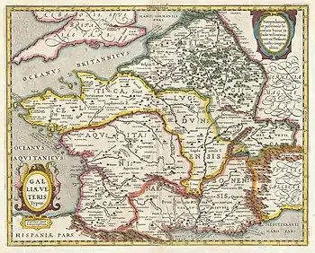 La Gaule (en latin : Gallia) était une région historique de l'Europe de l'Ouest, peuplée majoritairement lors de la conquête romaine, par les Celtes (appelés Gaulois par les Romains), les Belges, les Aquitains[2], les Ligures et les Ibères, correspondant approximativement actuellement à la France, le Luxembourg, la Belgique, la majeure partie de la Suisse, le nord de l'Italie, ainsi que des régions des Pays-Bas et d'Allemagne situées sur la rive ouest du Rhin. Les frontières exactes de la Gaule, signalées par César (le Rhin et une partie du Rhône à l'est, les Alpes au sud, les Pyrénées au sud-ouest, l'Atlantique à l'ouest), ont varié au fil du temps en raison des conquêtes, des migrations, des changements politiques et de la conception des Gaulois d'un espace qui leur était commun[3],[4].