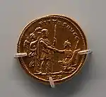 Constance Chlore recevant la soumission de la Bretagne, monnaie d'or frappée à Trèves en 297.