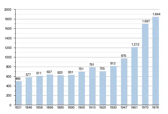 - Sources : INS, Rem. : 1831 jusqu'en 1970 = recensements, 1976 = nombre d'habitants au 31 décembre[3].