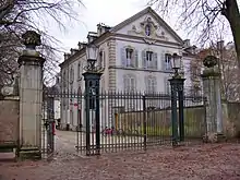 L'édifice a été réalisé comme un pastiche du XVIIIe siècle et a été construit sous le contrôle des architectes Léon Vautrin et Charles-Louis Bottelin[1].