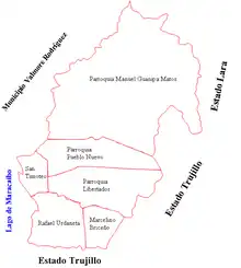 Son chef-lieu est la localité de Ceuta et ses villes principales les localités de Tomoporo de Agua, Tomoporo de Tierra, La Ensenada, El Murro, La Raya, La Bombita, Alto Viento, La Banía et Carrillo.