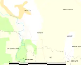 La commune de Gensac se trouve dans le département des Hautes-Pyrénées, en région Occitanie[I 1].