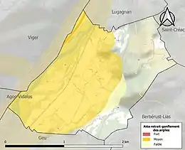 Le retrait-gonflement des sols argileux est susceptible d'engendrer des dommages importants aux bâtiments en cas d’alternance de périodes de sécheresse et de pluie. 62,1 % de la superficie communale est en aléa moyen ou fort (44,5 % au niveau départemental et 48,5 % au niveau national). Sur les 82 bâtiments dénombrés sur la commune en 2019, 76 sont en aléa moyen ou fort, soit 93 %, à comparer aux 75 % au niveau départemental et 54 % au niveau national. Une cartographie de l'exposition du territoire national au retrait gonflement des sols argileux est disponible sur le site du BRGM[35],[Carte 2].