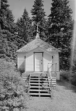Germain s'installa sur l'île Spruce entre 1811 et 1817[20]. Spruce est séparée de l'île Kodiak par un détroit large d'un kilomètre et demi. Sa situation était idéale pour mener une vie d'ermite. Germain nomma son ermitage : « Nouveau Valaam ». Il portait un habit très simple et dormait sur un banc couvert d'une peau de cerf. Lorsqu'on lui demanda comment il pouvait vivre seul au milieu des forêts, il répondit que « Je ne suis pas seul ; Dieu est ici. Dieu est partout »[21].
