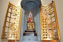 La statue de Notre-Dame, appelée Maria in der Wiese (Marie du Pré), fait l'objet du pèlerinage. Il s'agit d'une représentation en bois de la Sainte Vierge assise, tenant un sceptre dans la main droite et tenant l'Enfant Jésus par le bras gauche assis sur ses genoux. Cette sculpture date du milieu du XVe siècle. Il s'agit d'abord d'une pietà, puis elle a été remaniée ainsi. La statue a probablement été érigée et vénérée dans une chapelle qui existait avant 1500. La statue était vêtue jusqu'en 1876, suivant les différents temps liturgiques. Il n'y a aucune preuve historique d'un pèlerinage au Moyen Âge, mais il est certain que les pèlerinages y étaient anciens, cependant le premier document faisant mention du pèlerinage date d'une facture de l'église de Germershausen en 1678.