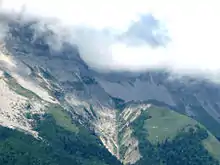 - des vallées, des cirques et des moraines. Dans les vallées, en particulier, il est possible de connaître l'altitude atteinte par la glace lors des glaciations en utilisant certaines formes héritées de celles-ci – les sites témoins[38] – tels les épaulements que présentent parfois les arêtes descendues des sommets latéraux en direction du talweg des vallées - ;