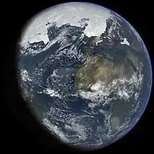 Les glaciations quaternaires[40] correspondent à la mise en place d'un climat qui se refroidit et au retour cyclique de périodes froides (dites glaciaires) et tempérées (interglaciaires). Il y a environ 12 000 ans a débuté la période interglaciaire actuelle, l'Holocène.