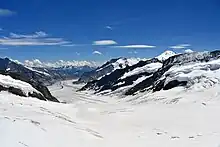Le glacier d'Aletsch est le plus grand glacier des Alpes, situé dans le canton du Valais dans le Sud de la Suisse. Il est entouré au nord par le massif de la Jungfrau, au sud par la vallée du Rhône avec laquelle le glacier communique via les gorges de la Massa, à l'est par le lac Märjelen et à l'ouest par l'Aletschhorn.