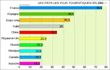 85. Le développement des stations touristiques dans le champ touristique mondial, article de Christophe Clivaz, Stéphane Nahrath et Mathis Stock, in Tourisme et mondialisation, sous la direction de Philippe Duhamel et Boualem Kadri, édition Mondes du tourisme, septembre 2011. Chiffres de l'OMT.