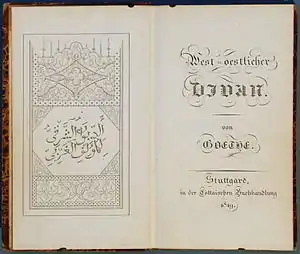 Celui des soufis (Hâfez et indirectement Rûzbehân et Hallâj) ensuite, Goethe avait en effet dès ses années d'études lu le Coran avec attention et il devait tout au long de sa vie y faire référence[33]. Il devait également marquer cet intérêt par la publication d'œuvres inspirées de l'Islam telle sa tragédie Mahomet ou son Divan occidental-oriental, véritable introduction au dialogue inter-religieux où le fatalisme et la révérence à la nature des musulmans se révèlent proches de ses préoccupations[34].