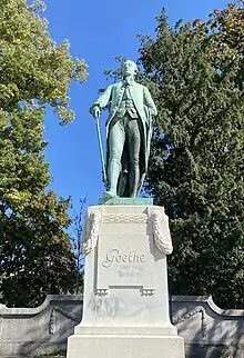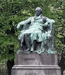 Johann Wolfgang von Goethe /ˈjoːhan ˈvɔlfɡaŋ fɔn ˈɡøːtə/[alpha 1] , né le à Francfort et mort le à Weimar, est un romancier, dramaturge, poète, scientifique, théoricien de l'art et homme d'État de la ville libre de Francfort.