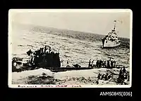 A 20h30, sur son parcours de retour, le Gondar croisé le destroyer australien HMAS Stuart (D00) à seulement 1 500 mètres, devant plonger rapidement à 80 mètres[4],[7]. Cependant, le navire ennemi repère rapidement le sous-marin à l'aide de son échogoniomètre, et commence à le bombarder avec des grenades sous-marines. Deux heures plus tard (à 22h30), le destroyer HMS Diamond (H22) et une corvette se sont joints à la chasse, rejoints plus tard par des éclaireurs et des avions anti-sous-marins (notamment un hydravion Short Sunderland)[4],[7]. Touché par une telle grêle de grenades sous-marines, le Gondar, gravement endommagé malgré toutes les manœuvres d'évitement, doit faire surface, après avoir tenu bon pendant douze heures: il est 8h30 le 30 septembre[4],[7].
