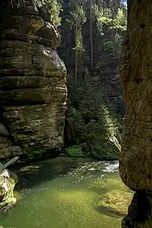 Ces gorges font partie des monuments naturels[2] impressionnants situés dans les montagnes gréseuses de l'Elbe.