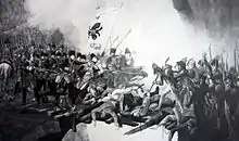 Combat des Russes (à gauche) contre les Français (à droite) sur le pont du Diable.