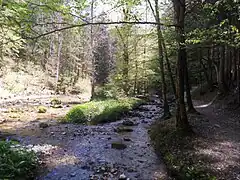 Des blocs erratiques, présents tout au long du ruisseau, ont été transportés par un ancien glacier il y a environ 20 000 ans. Des cristaux sont visibles sur ces rochers, indiquant la présence de roches cristallines originaires des Alpes centrales. Ceux-ci se distinguent des blocs de calcaire locaux par leur forme arrondie, due à l'érosion[5].