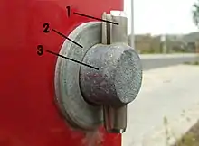 Une goupille élastique (1) et une rondelle (2) bloquant un axe (3).