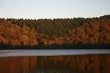 Le lac a une profondeur de 66 mètres[1]. Ses berges, sauf au nord et au nord-est, sont boisées et en pente prononcée d'une hauteur de cinquante mètres environ.