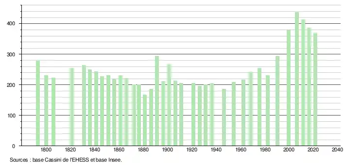 - Fiches Insee - Populations légales de la commune pour les années 2006, 2007, 2008, 2009, 2010, 2011, 2012, 2013, 2014, 2015, 2016, 2017, 2018, 2019, 2020 et 2021.